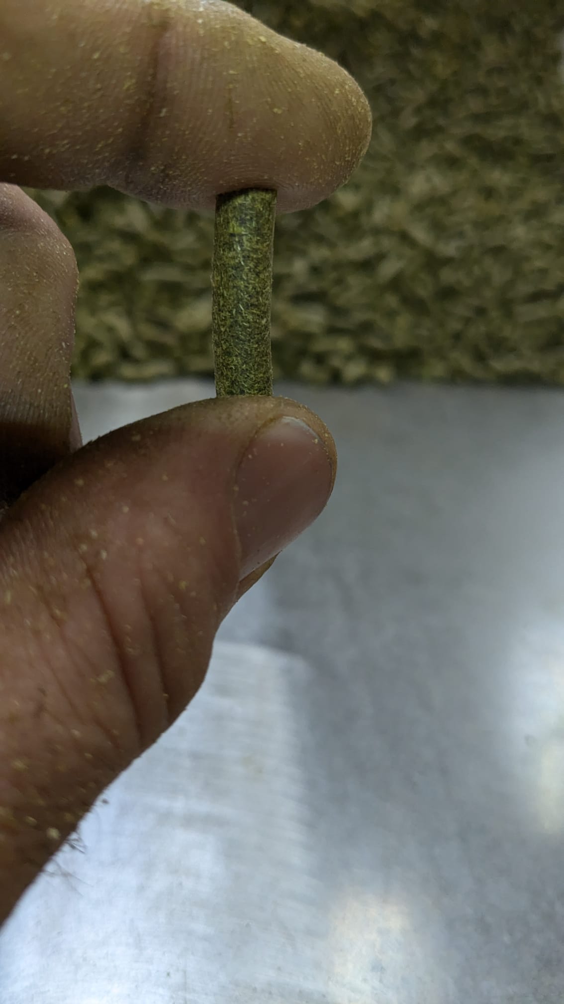 La densité : attrapez un pellet avec les doigts puis écrasez le dans la paume de votre main