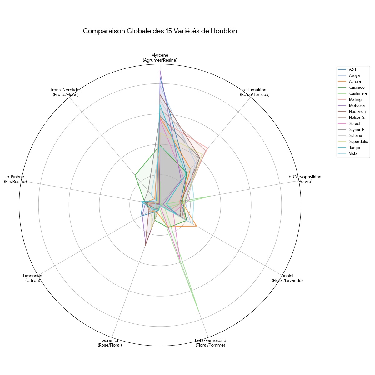 Observation : Les houblons dits “Nobles” (comme votre Malling ou Aurora) ont souvent un équilibre polyphénols/huiles très différent des variétés “Aroma” modernes.