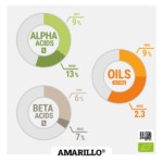 L’Amarillo® été découvert un peu par hasard et est développé / propriété de Virgil Gamache Farms. Il développe, – et ils sont rares dans ce cas -, des saveurs correspondant aux arômes; dit autrement, il “goûte” ce qu’il sent, pas de surprise. L’Amarillo® a un fort taux d’huile myrcène lui confère des arômes et saveurs plutôt fous! C’est une rock star dans le monde de la « craft »: à découvrir absolument, vous ne serez pas déçu.e!